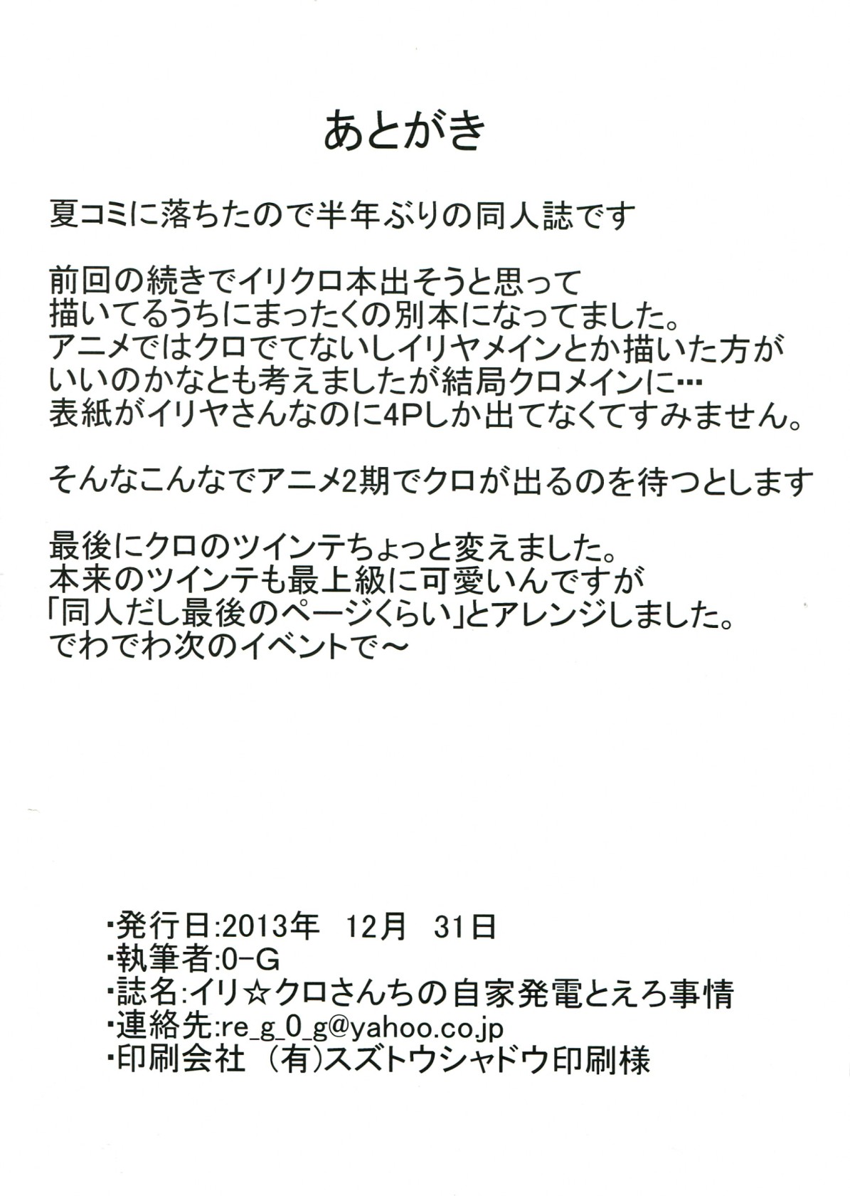 Fate/kaleid liner プリズマ☆イリヤ イリ☆クロさんちのまにあっくな家庭事情
